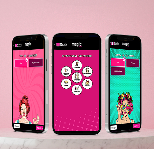 Un salon cu adevarat magic! Am fost tratata cu multa caldura de la prima mea vizita!, Fetele au grija sa te simti cât mai confortabil si sa fii multumita din orice punct de vedere, te informeaza de reducerile pe care le au, m-au ajutat sa îmi instalez aplicatia, prin care îmi verific punctele. Sunt foarte incantata si astept sa apara rubrica pentru programari. Felicitari Magic, mult succes!